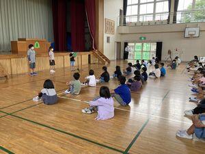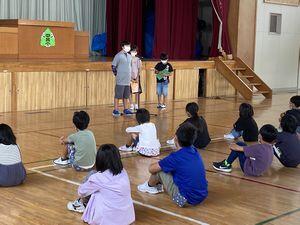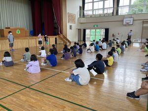 業前時間を利用して,「プール納会」を行いました。はじめに,1・3・5年生の代表者が今年度の水泳学習の感想を全校児童の前で堂々と発表しました。できたこと,できなかったこと,来年の目標などをしっかり発表することができました。