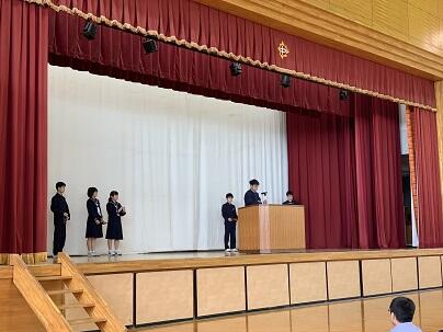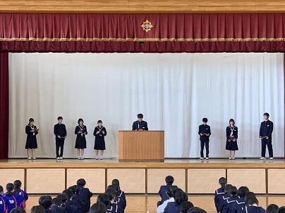 冬季休業前集会では、2学期前半の頑張り、特に自律的・自主的な活動についての頑張りについて、また、生徒指導部から冬休みの過ごし方、SNSの使い方、安全な生活について話がありました。